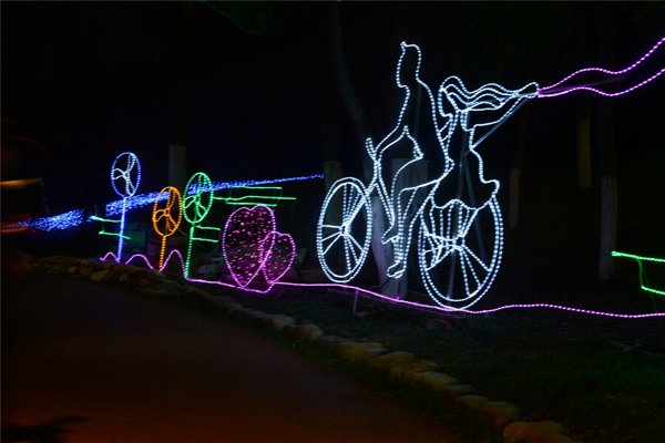 其中,“一龍趕九龜”燈組全長150米,是迄今為止湖南省最長的水上長龍,外觀大氣磅礴,充滿傳奇色彩;令人點讚的“美德教育長廊”燈組設計10個傳統教育經典故事,包括“聞雞起舞”、“孟母教子”等,人物栩栩如生,集中體現了社會主義核心價值觀內涵,讓廣大青少-寓教於樂;“侏羅紀探秘”燈組塑造了侏羅紀時期恐龍生活的真實場景,有體型巨大的霸王龍,也有憨態可掬的小恐龍,場景生動形象……除了原來的燈組,最近還新增了“--有餘”、“天鵝之戀”、“茶博園”、“鯉魚跳龍門”、“風鈴”、“金色風鈴”等6個燈組,為燈會增色不少。