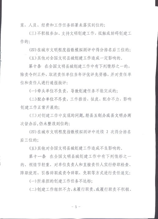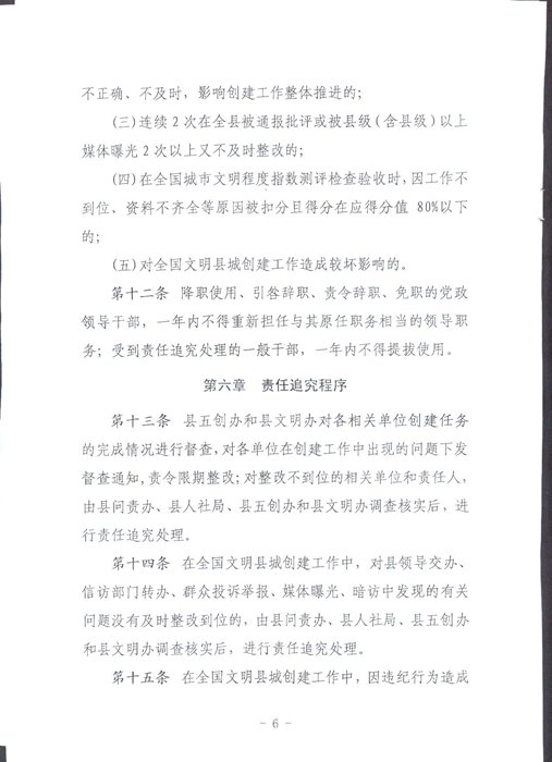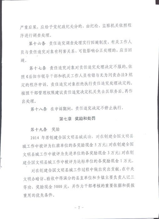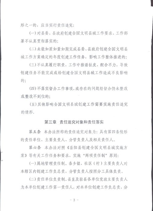 關於印發《嶽陽縣創建全國文明縣城工作責任追究和獎勵辦法》的通知