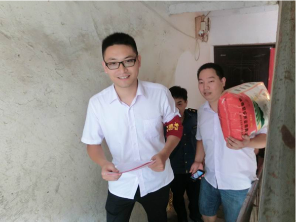 活動中,6名誌願者將準備好的大米、食用油等物資扛到老人們家中,將慰問金交到老人們手上,並詳細了解他們的生活及身體情況,叮囑他們注意保重身體,安享晚-。