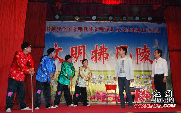 紅網嶽陽縣站10-10訊(分站記者 陳嵬)10-9晚,城關鎮慶豐社區燈火通明,人頭攢動,熱鬧非凡。由縣委宣傳部主辦,縣文廣新局和城關鎮政府承辦的“文藝進社區”係列演出活動在該社區進行了第二場演出。