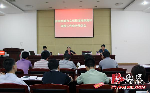 紅網嶽陽縣站6-10訊(分站記者許偉軍 通訊員 餘誌鬆)為深入推進全國文明城市創建,全麵做好文明指數測評工作。6-9,嶽陽縣召開城市文明程度指數測評工作培訓會,縣委常委、宣傳部長、統戰部長喻飛躍出席會議。城關鎮、鹿角鎮、縣直相關部門及各居委會相關負責人參加。縣委宣傳部副部長李慶新主持會議。
