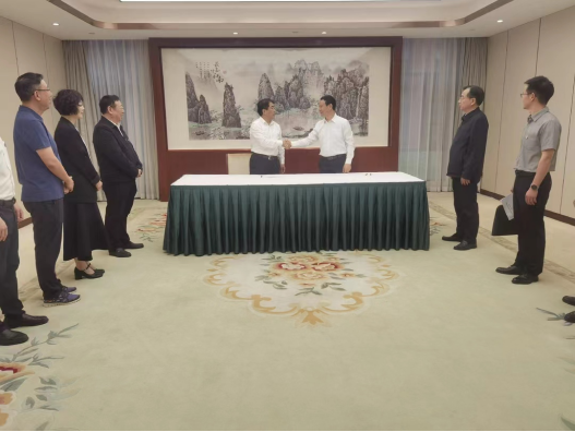 (湖南省配合中央生態環境保護督察協調聯絡組副總協調人曹普華從中央第五生態環境保護督察組總協調人嶽建華手中接過本次環保督察向湖南交辦第一批信訪舉報件。彭雅惠 攝)
