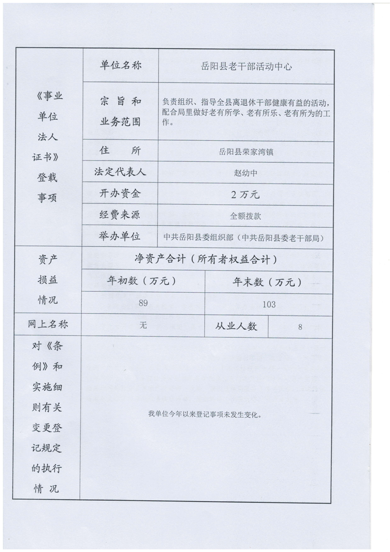 老幹部活動中心單位法人年度報告書