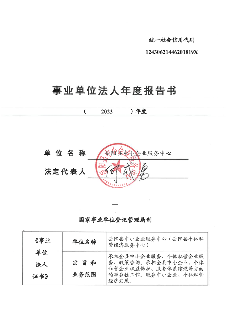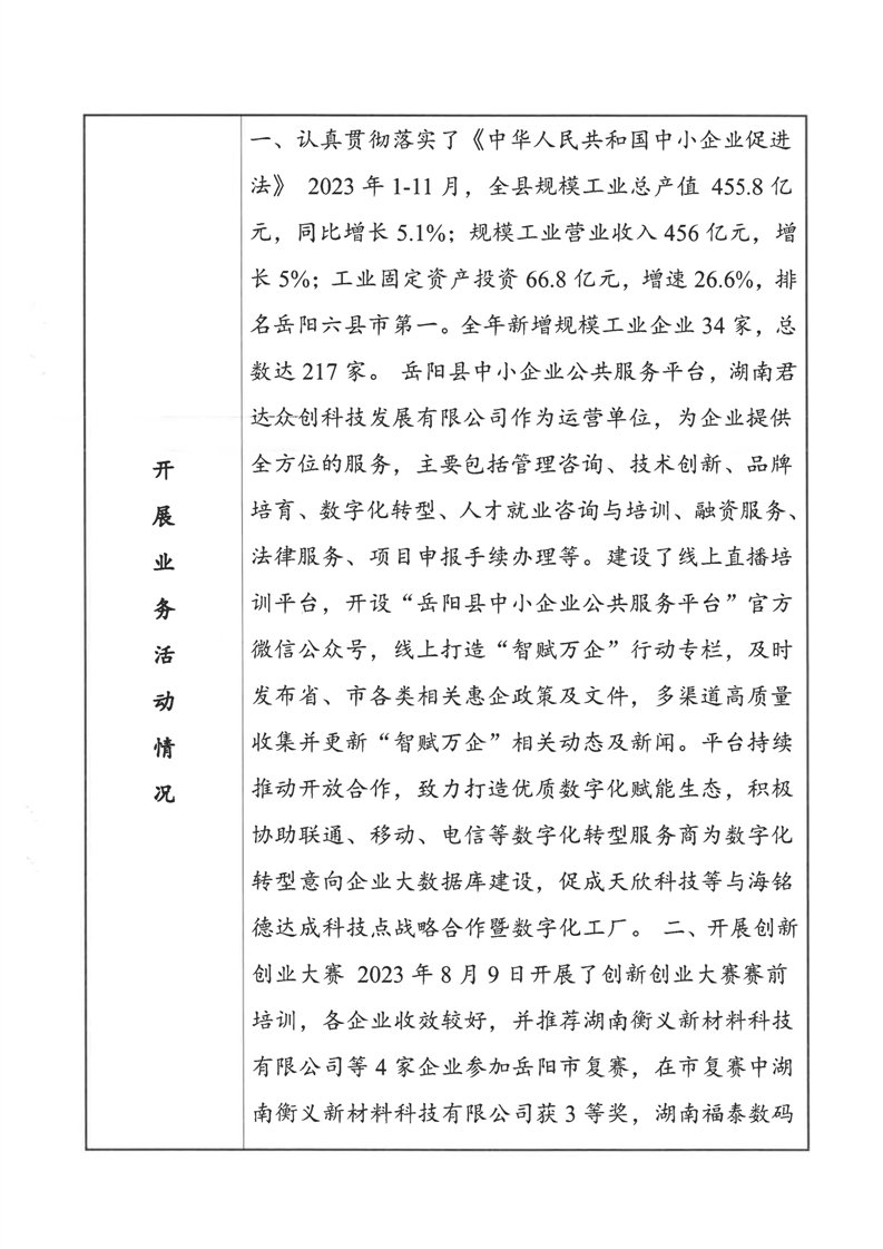 嶽陽縣中小企業服務中心2023年度報告書