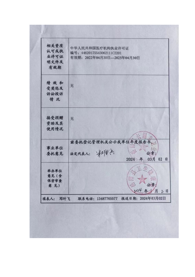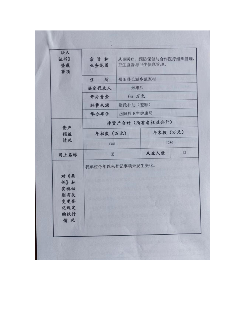 嶽陽縣衛生健康局長湖鄉衛生院年度報告書