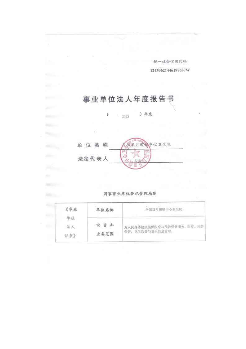 嶽陽縣衛生健康局月田鎮衛生院年度報告書