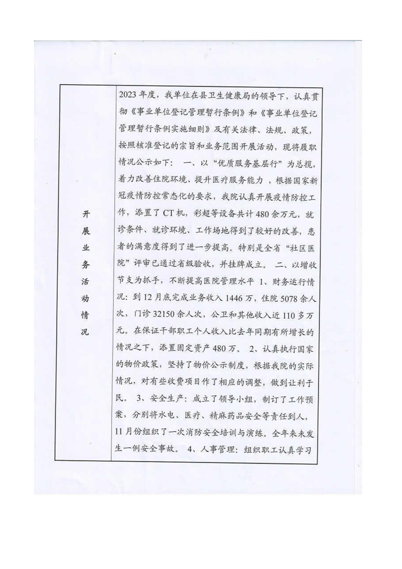 事業單位法人2023年度報告公示