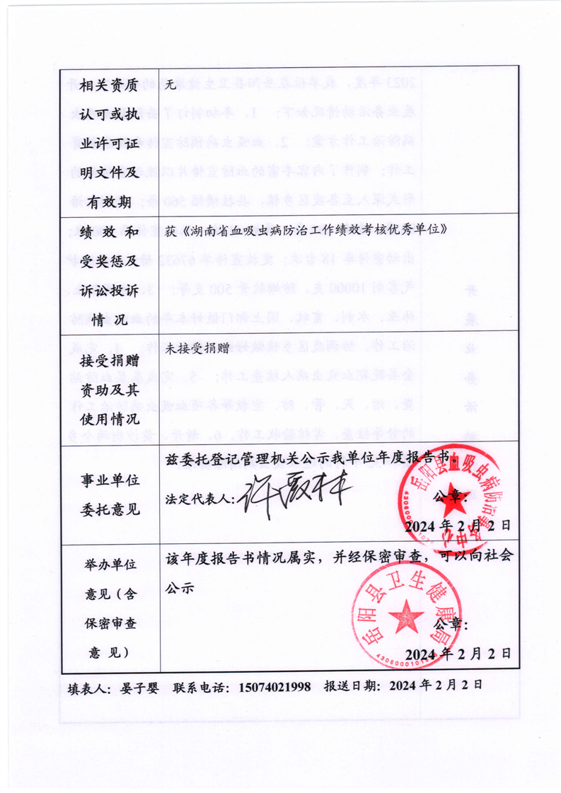 嶽陽縣衛生健康局縣血吸蟲病防治事務中心年度報告書