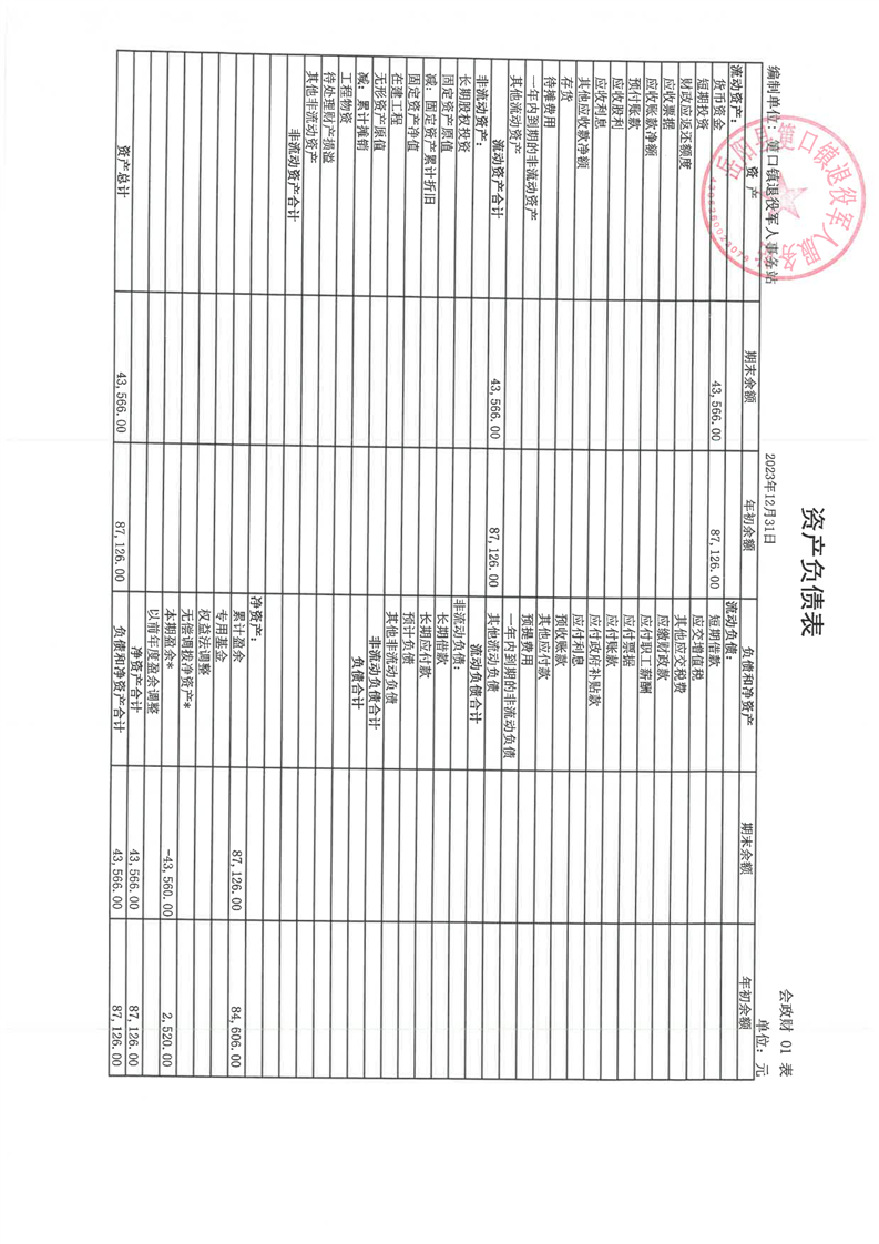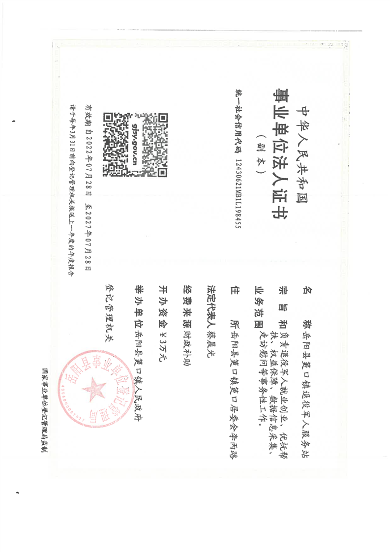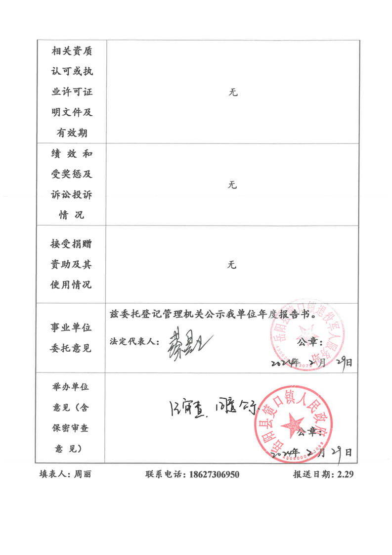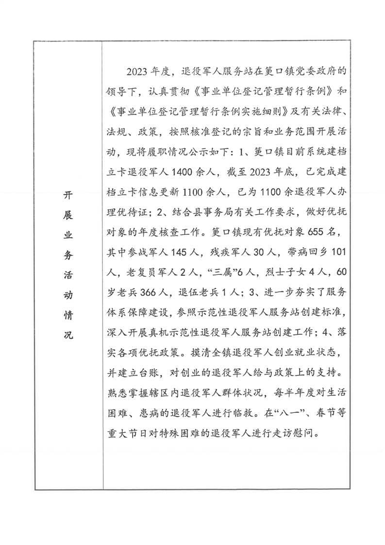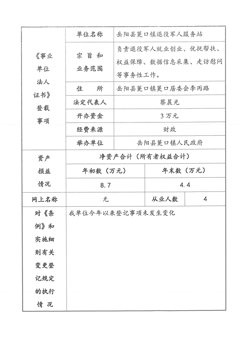 筻口鎮事業單位法人年度報告書-退役軍人服務站