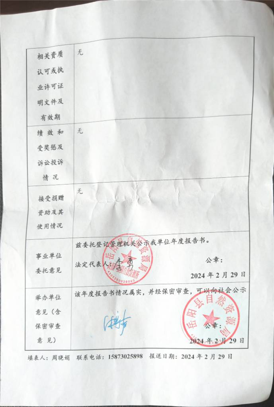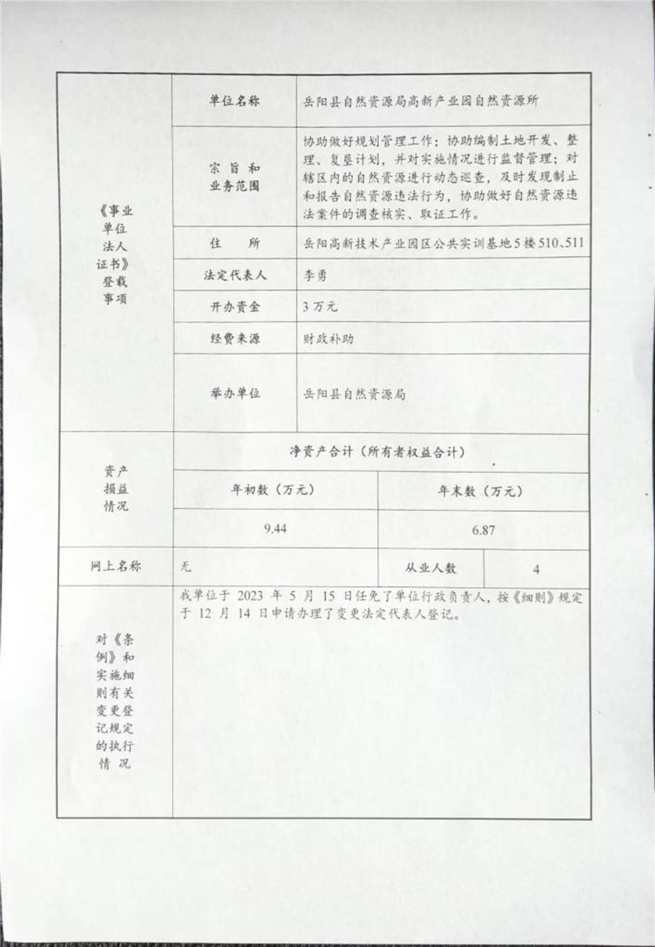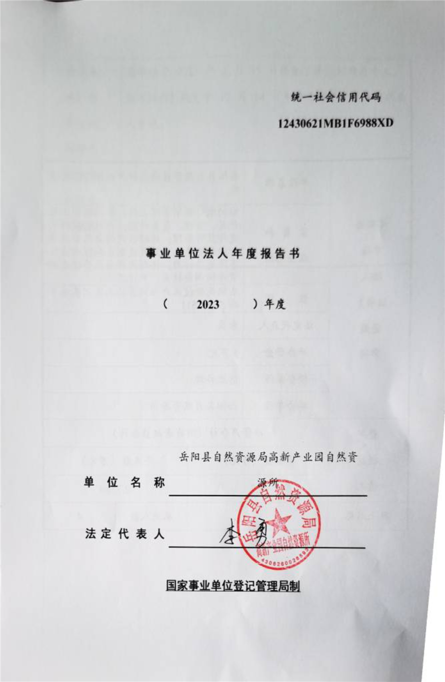 嶽陽縣自然資源局高新產業園自然資源所事業單位法人年度報告書