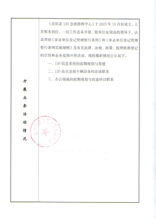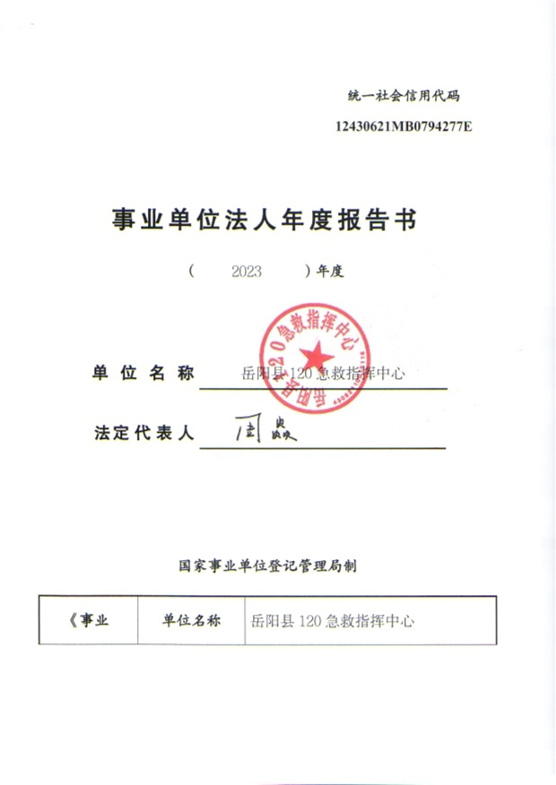 嶽陽縣衛生健康局120急救中心法人年度報告書