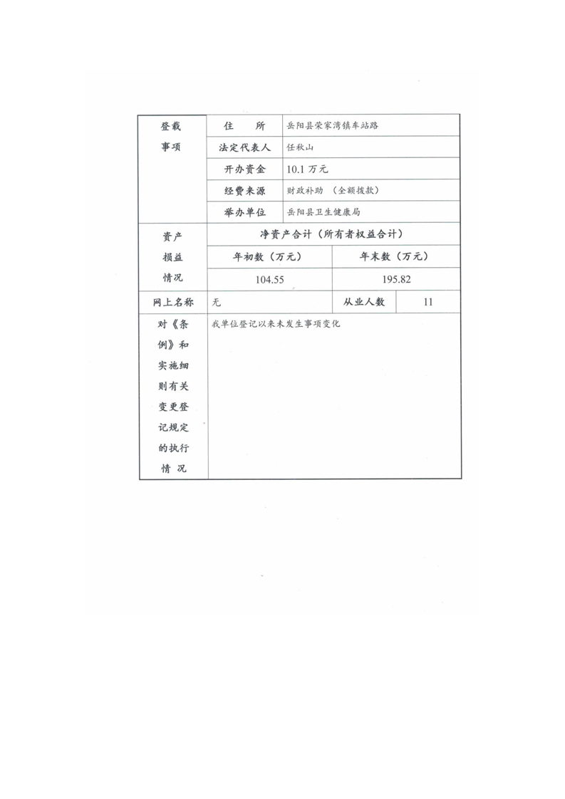 嶽陽縣衛生健康局榮家灣社區衛生服務所年度報告書