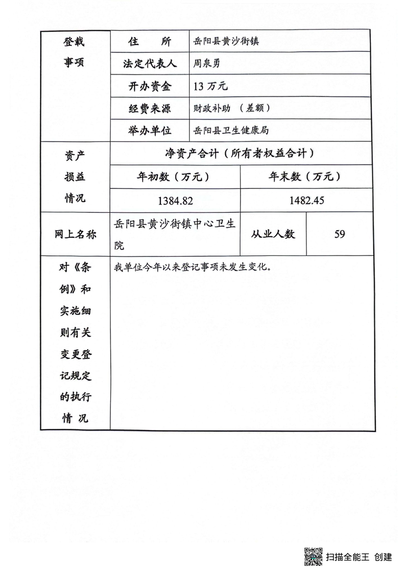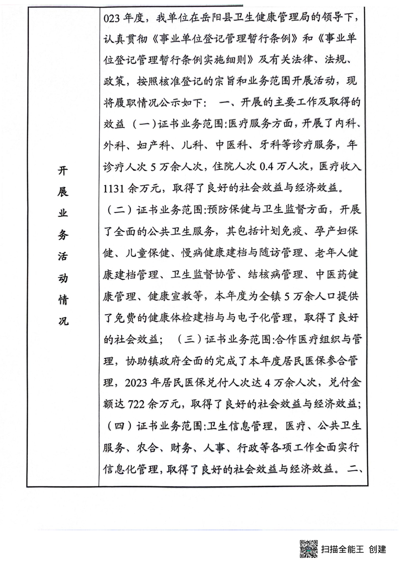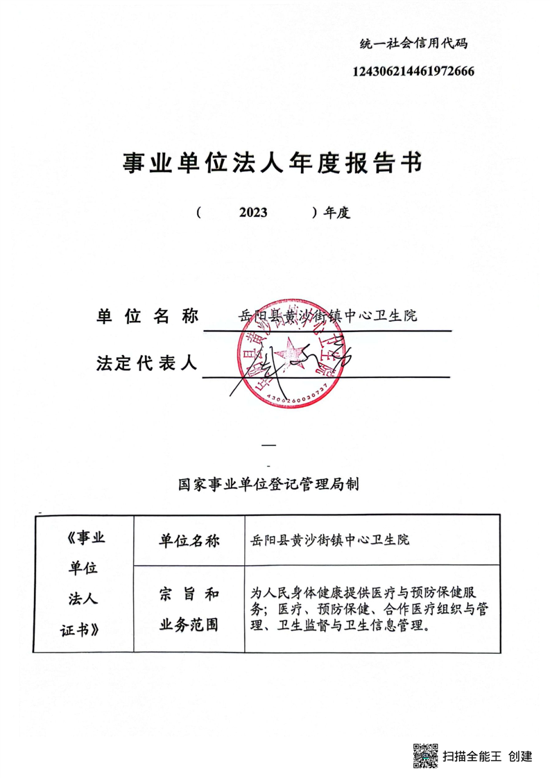 嶽陽縣衛生健康局黃沙街鎮衛生院年度報告書
