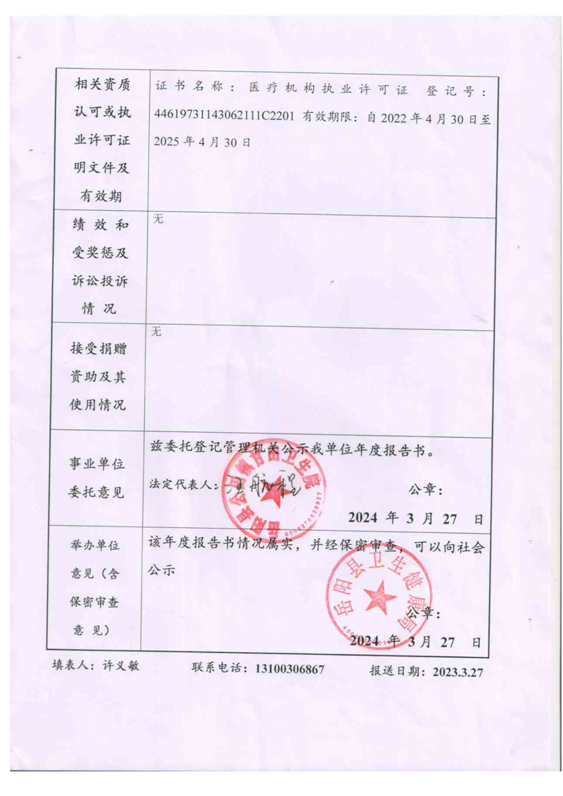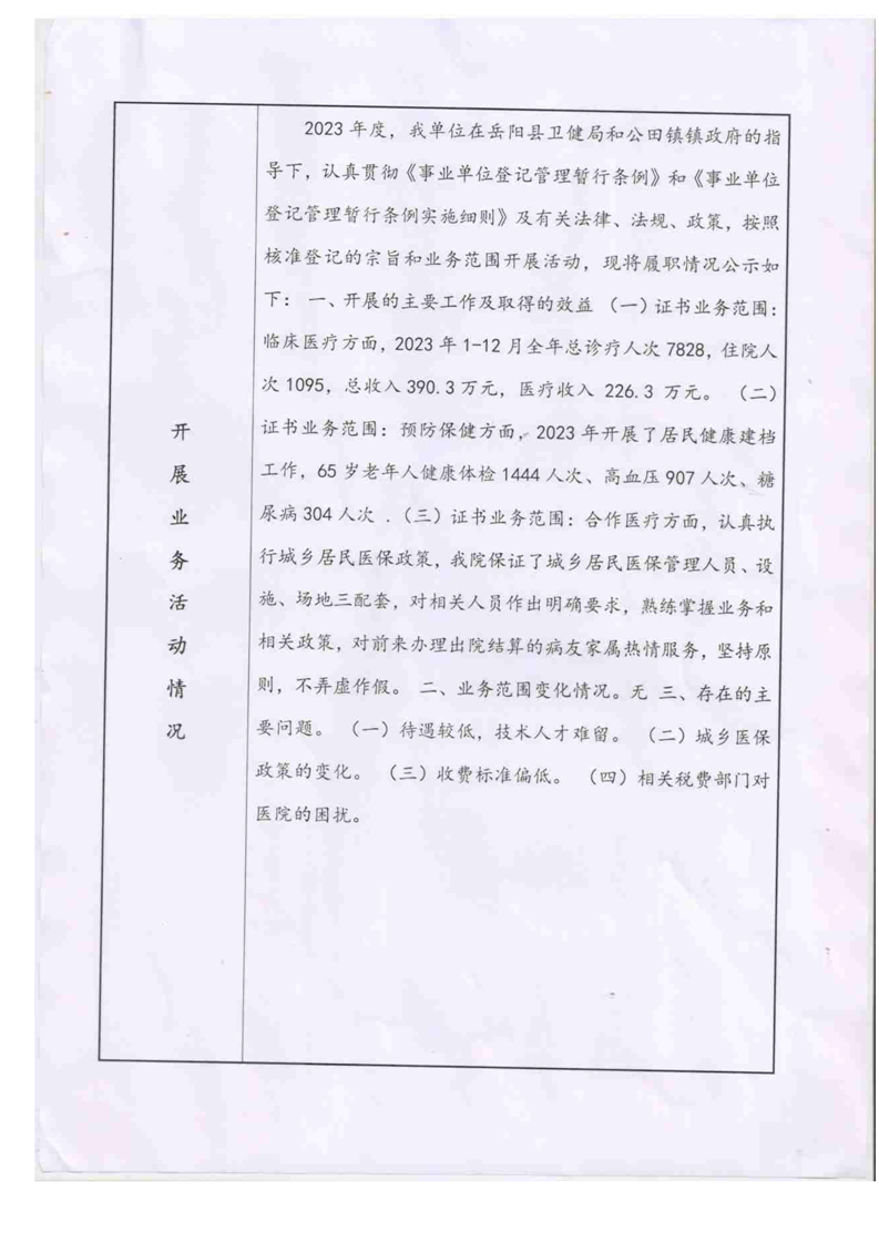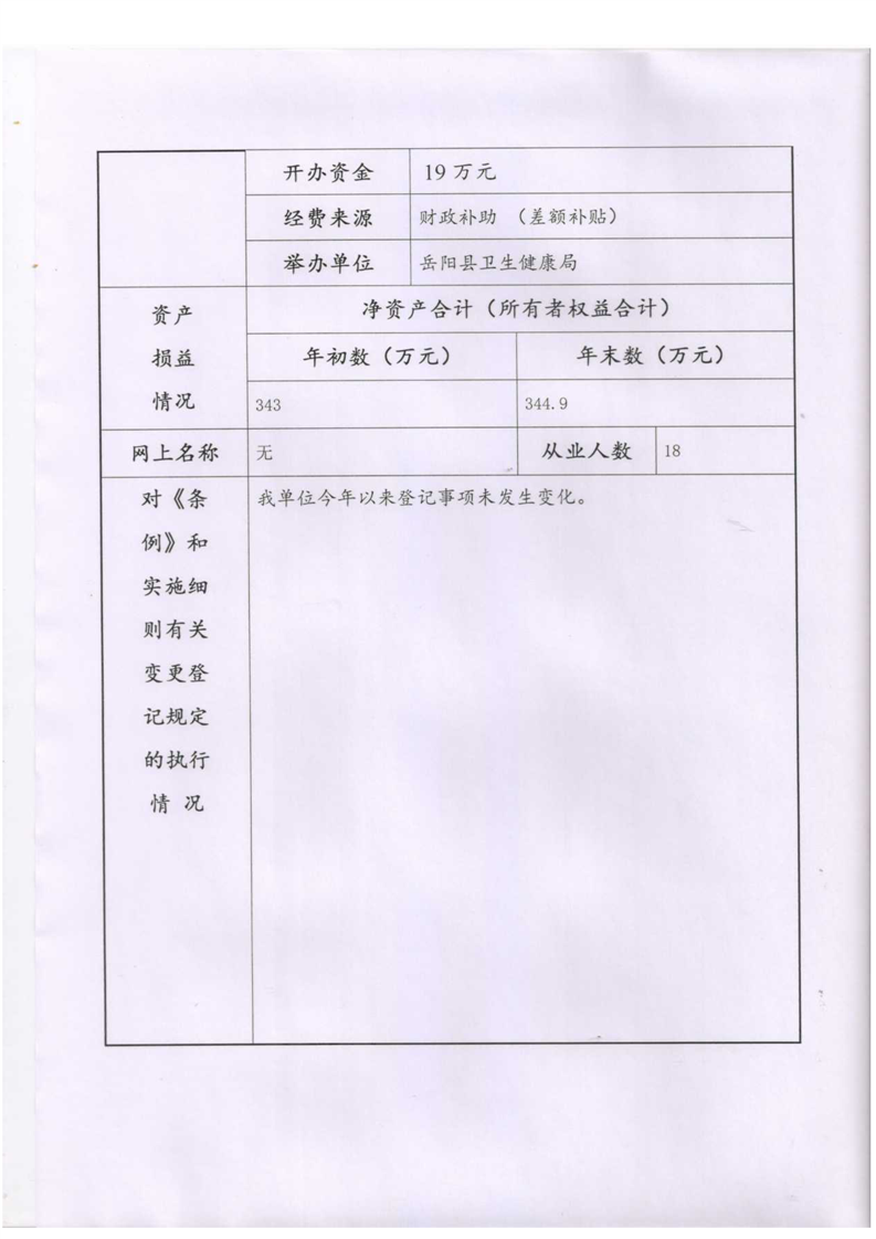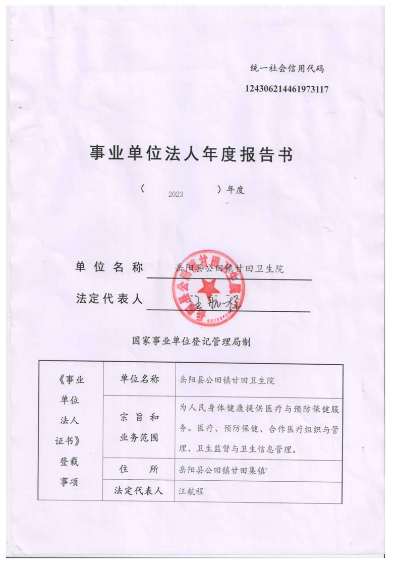 嶽陽縣衛生健康局甘田衛生院年度報告書