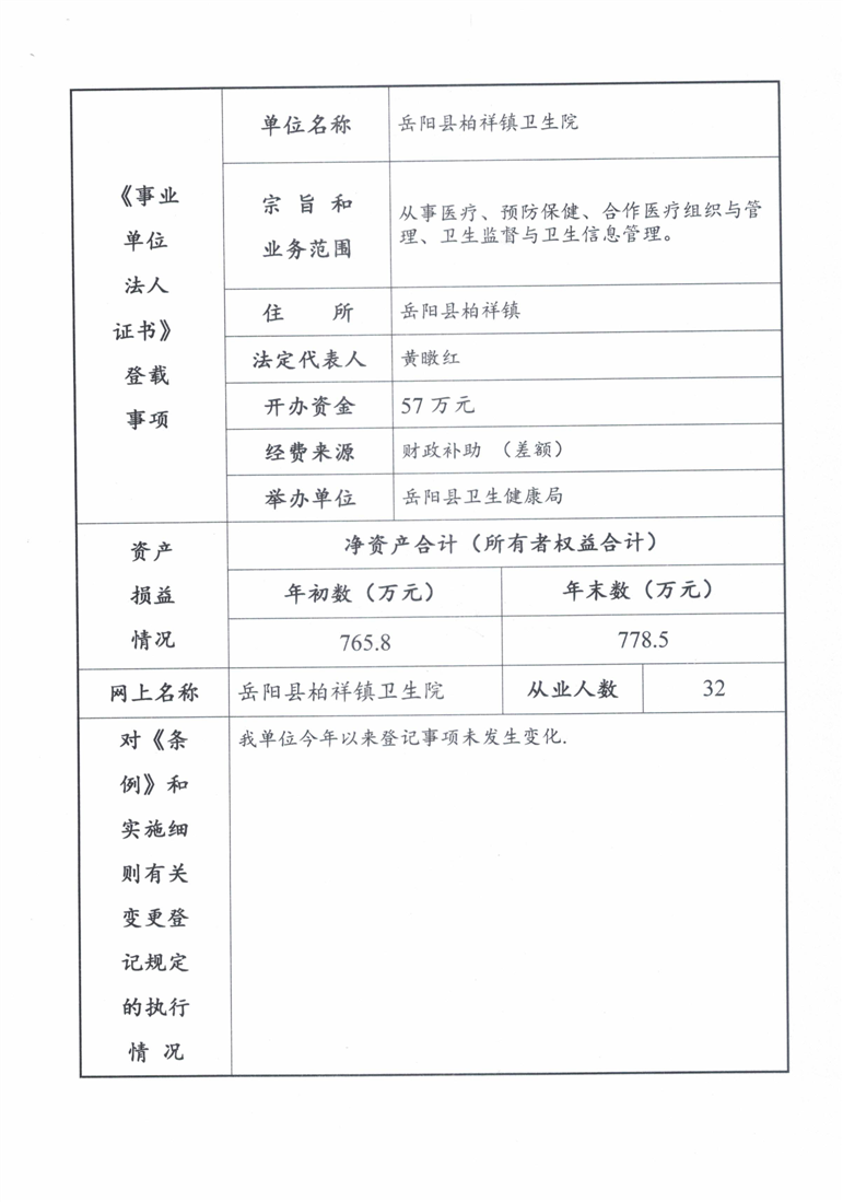 嶽陽縣衛生健康局柏祥鎮衛生院年度報告書