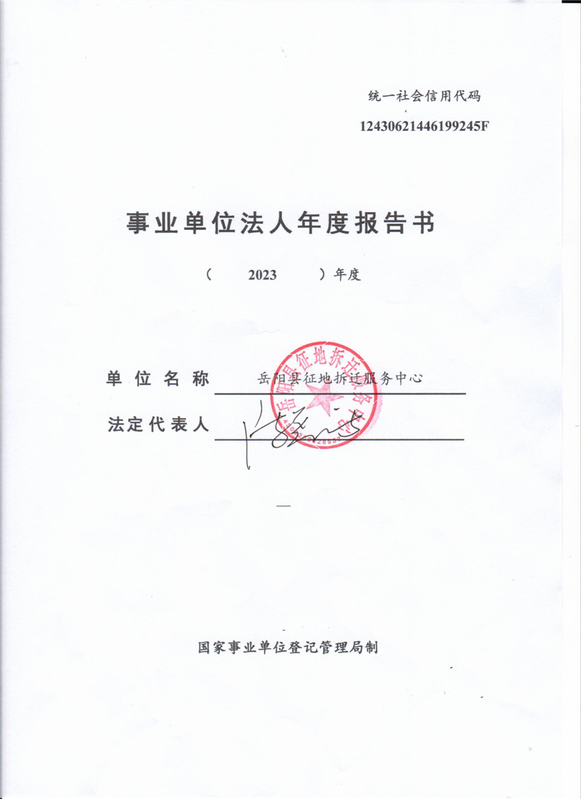嶽陽縣征地拆遷服務中心事業單位年度報告書
