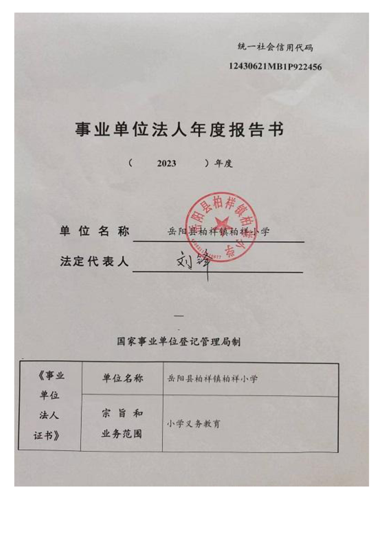 嶽陽縣柏祥鎮柏祥小學2023年法人年度報告