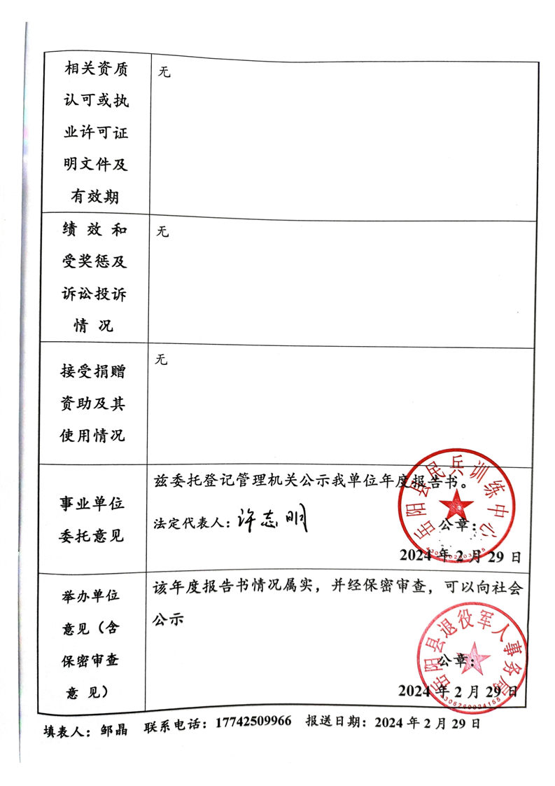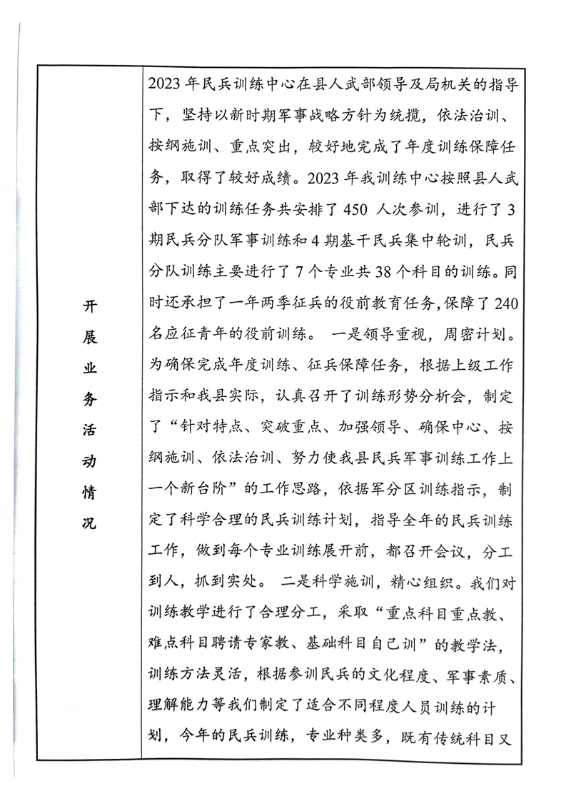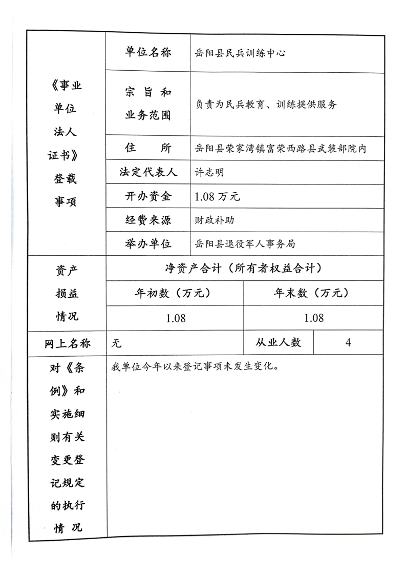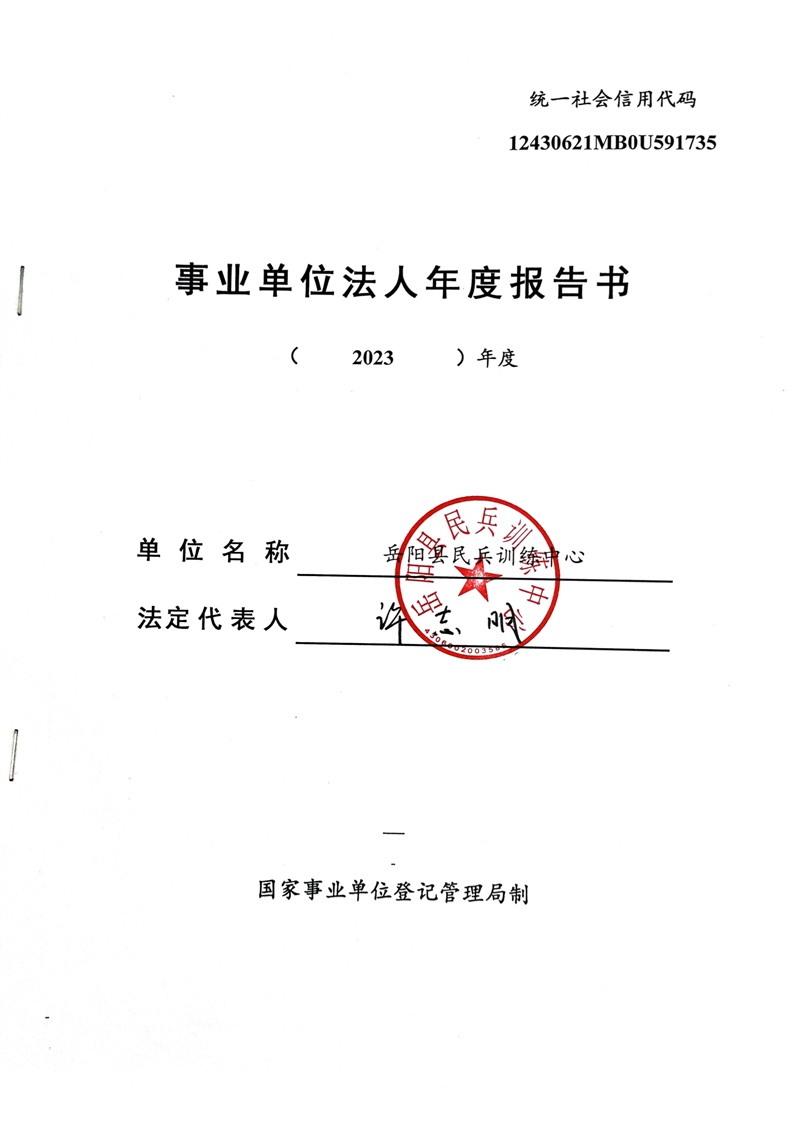 嶽陽縣民兵訓練中心事業單位2023年度法人年度報告書