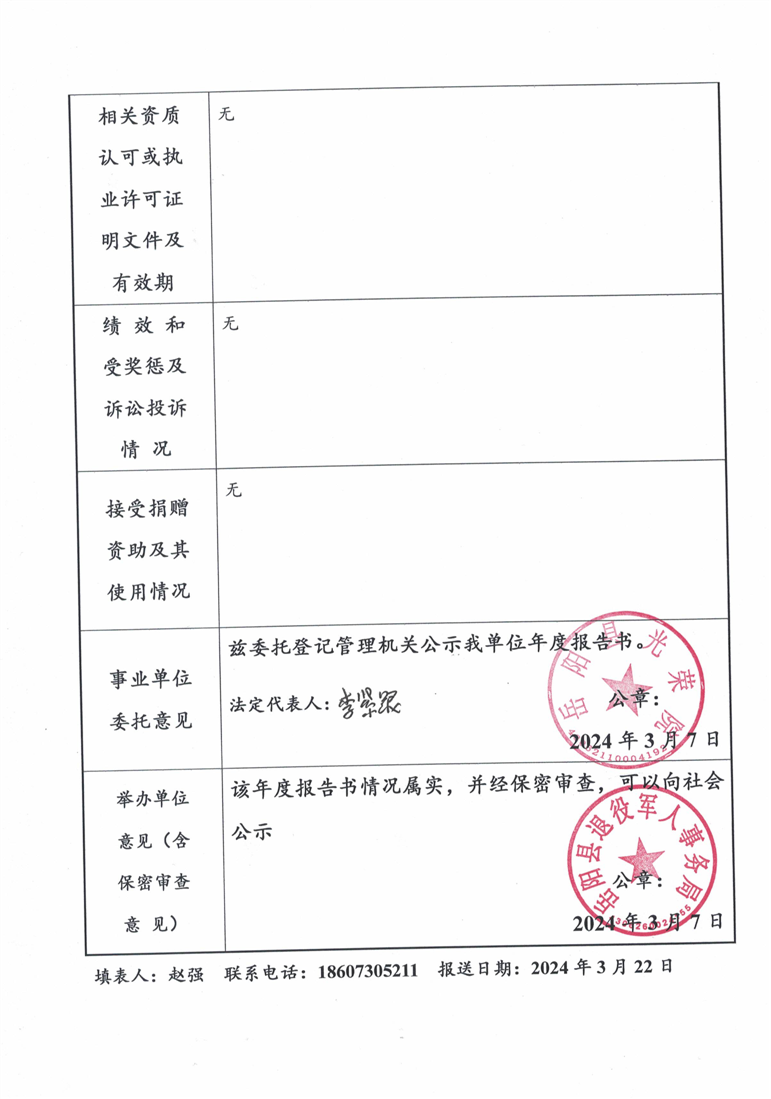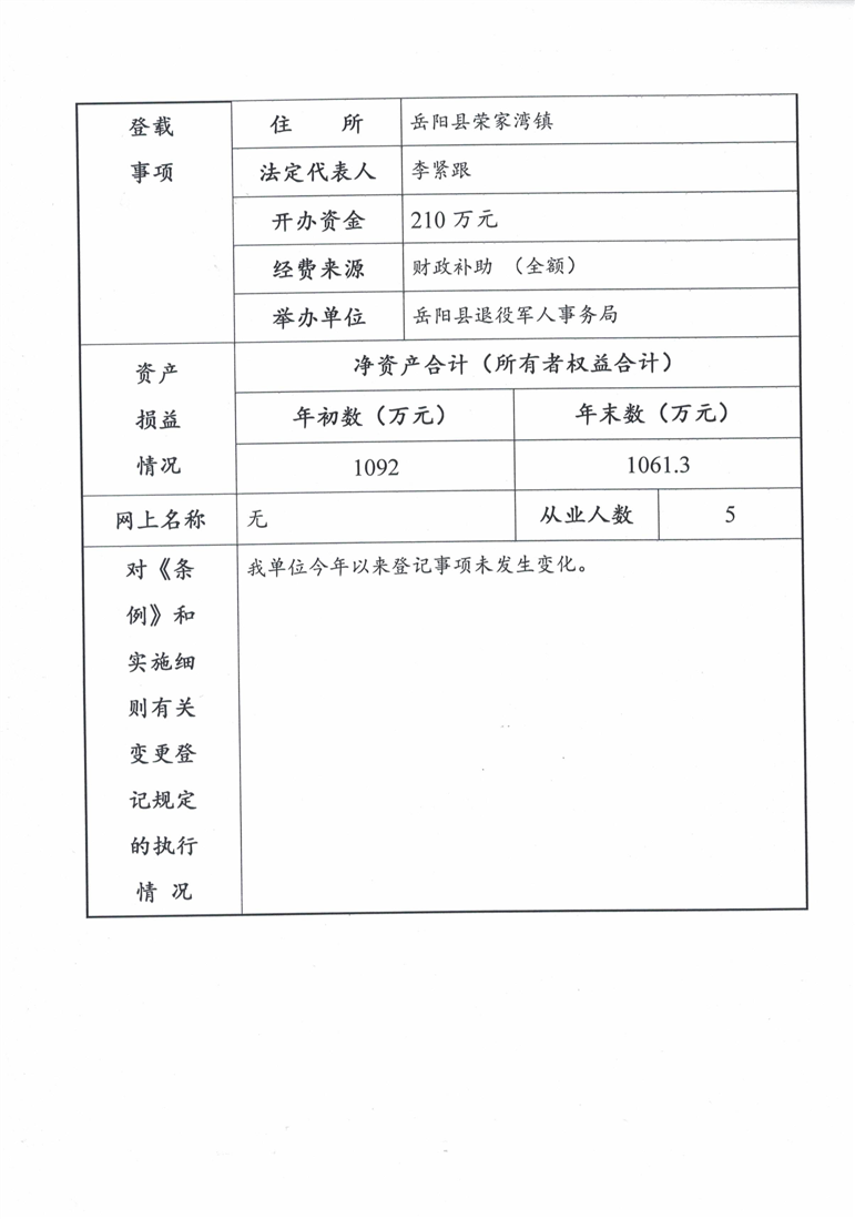 嶽陽縣光榮院事業單位2023年度法人年度報告書