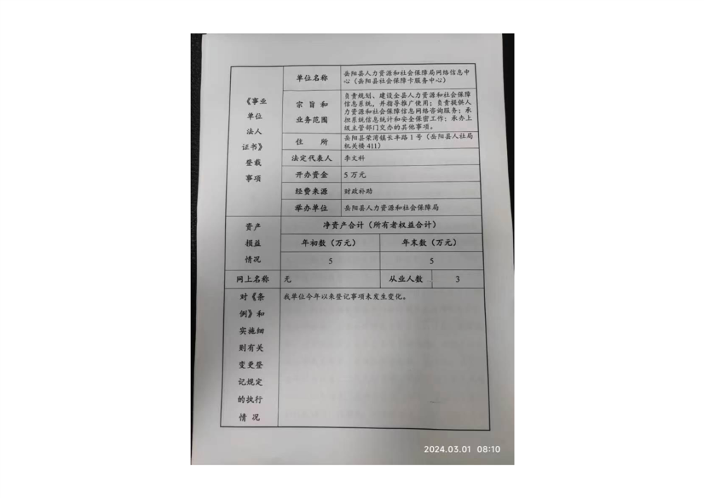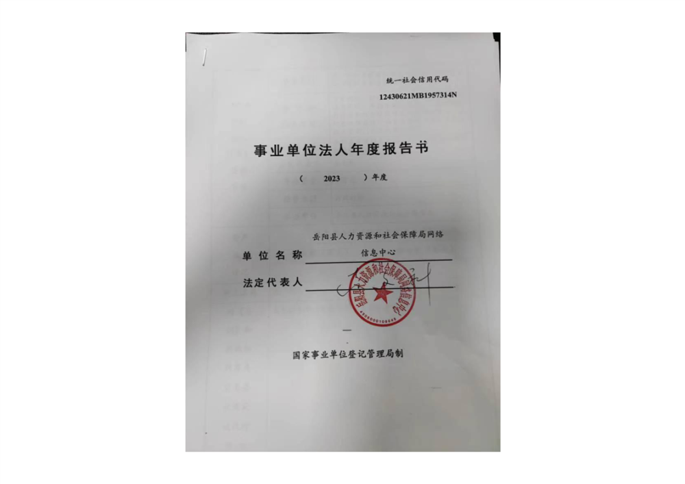 嶽陽縣人力資源和社會保障局信息網絡中心2023年度報告書