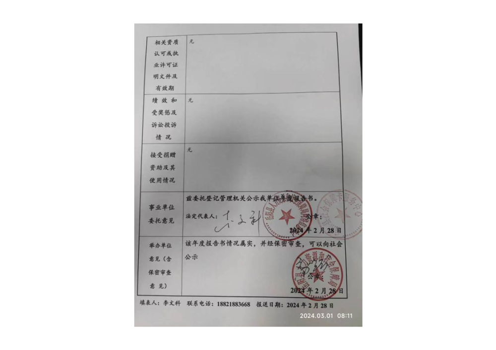 事業單位法人2023年度報告公示