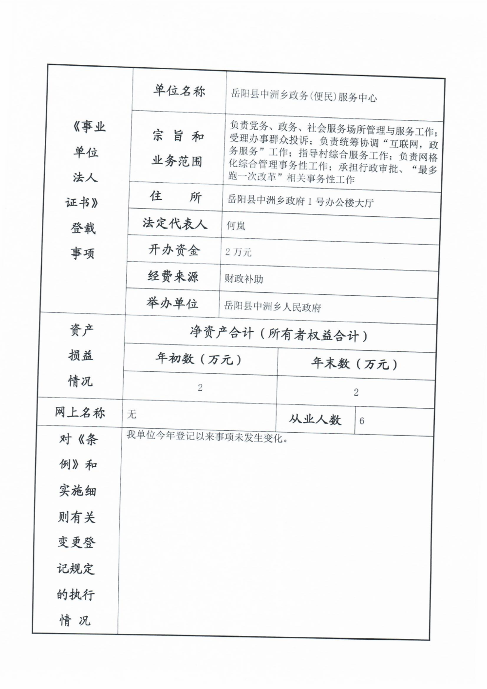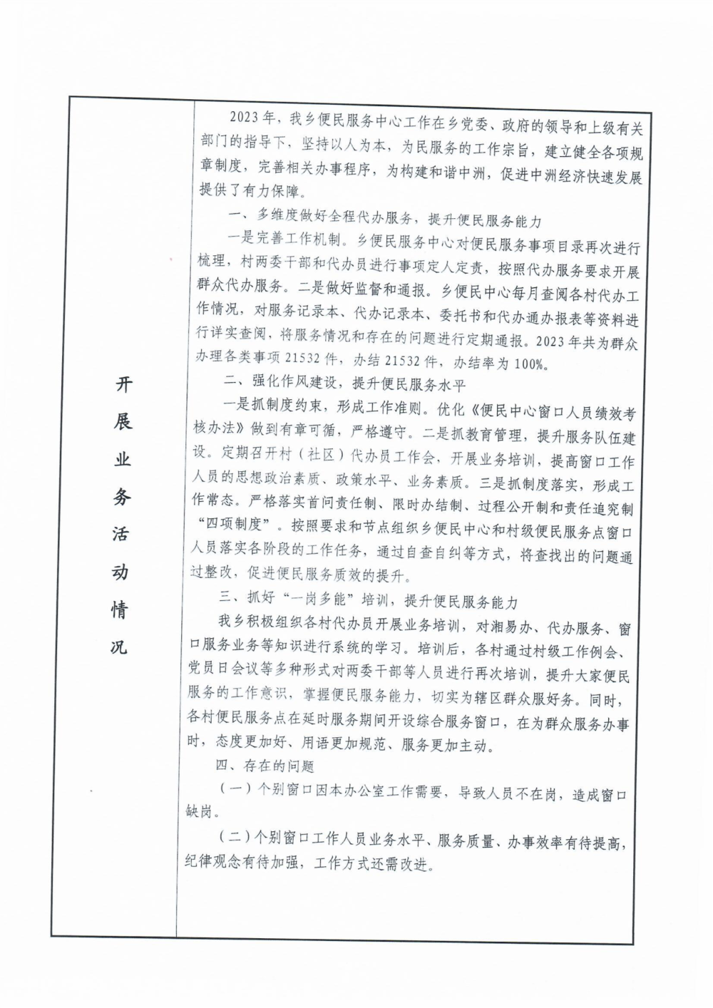 嶽陽縣中洲便民服務中心2023年度報告書