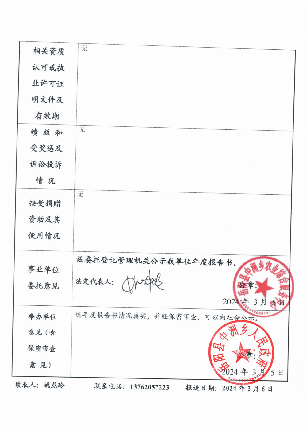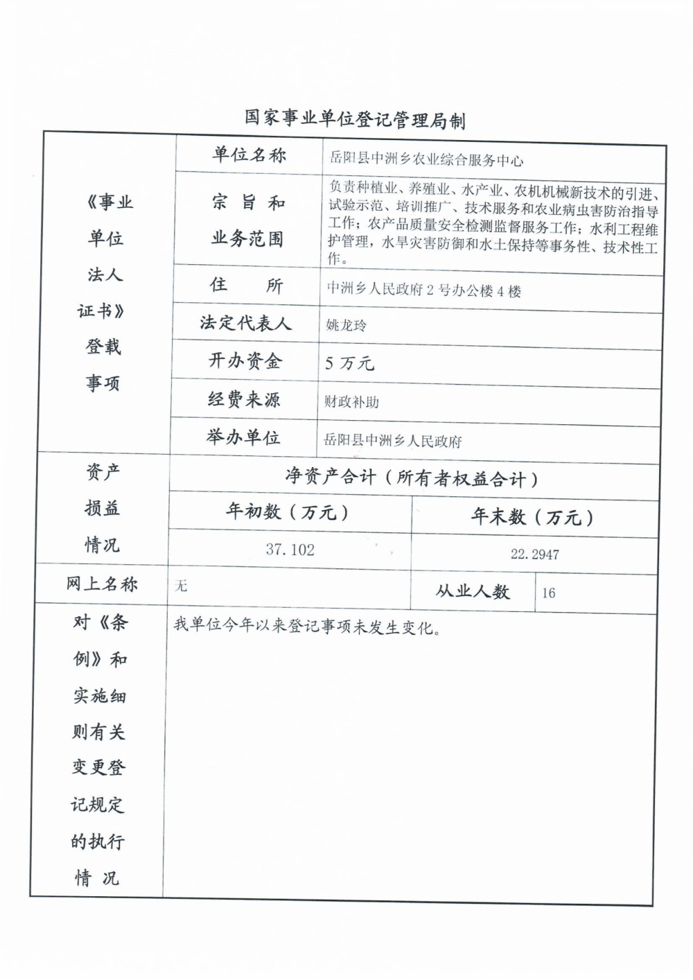 嶽陽縣中洲鄉農業綜合服務中心2023年度報告書