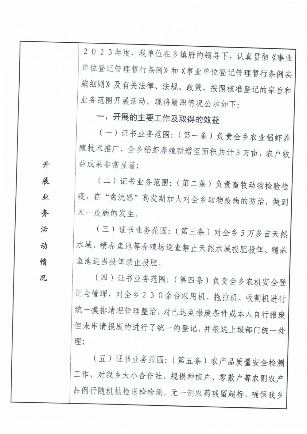事業單位法人2023年度報告公示