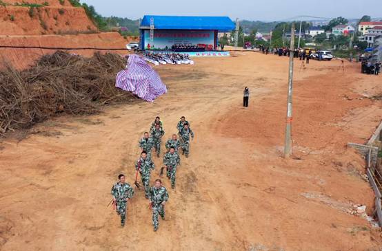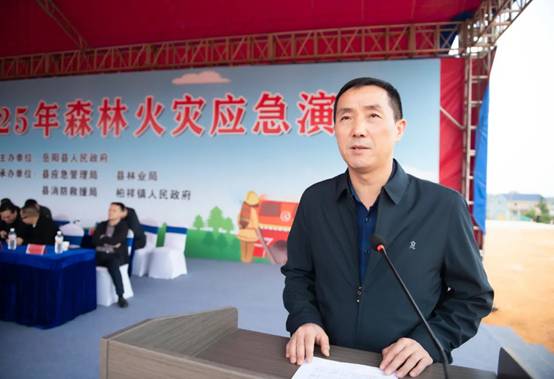 演練伊始,指揮員向總指揮報告:“報告總指揮,嶽陽縣2025年森林火災應急演練準備就緒,請指示。”