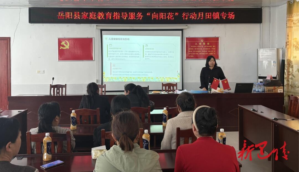 嶽陽縣融媒體中心4月22日訊(張雙文)為進一步提升家庭教育指導服務水平,促進兒童身心健康成長,近日,嶽陽縣月田鎮婦聯聯合鎮教育部門、村(社區)委員會,組織開展“家庭教育指導服務‘向陽花’行動”月田鎮專場活動。活動聚焦兒童飲食健康與非暴力教育兩大主題,通過專題講座、互動交流等形式,為全鎮百餘名家長帶來科學育兒理念與實踐指導。