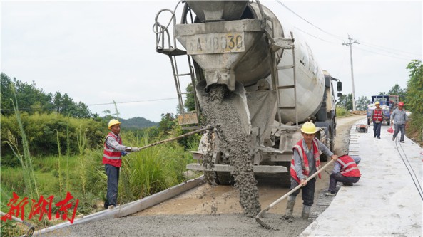 三軸儀隆隆駛過,“滾燙”的混凝土逐漸攤平,與養護工古銅色的皮膚融為一體。這條被汗水反複浸潤的鄉道,終將成為散落村莊的堅韌紐帶,在青山綠水間,托起無數個家庭的生計與遠方。