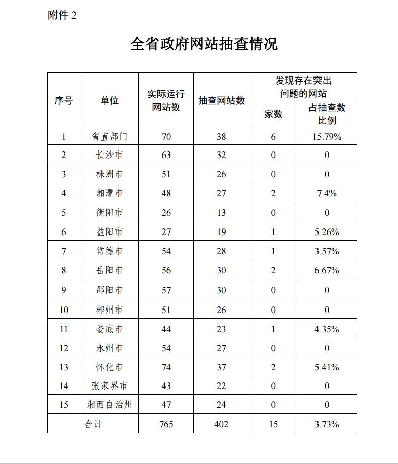 2.全省政府網站抽查情況