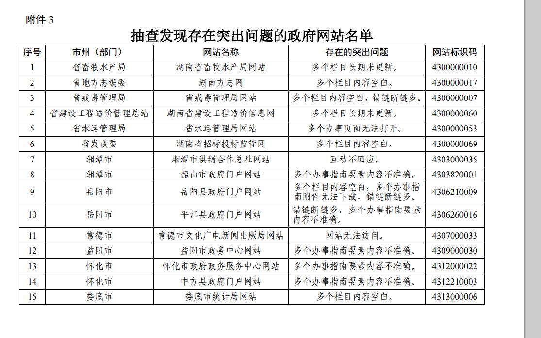 3.抽查發現存在突出問題的政府網站名單