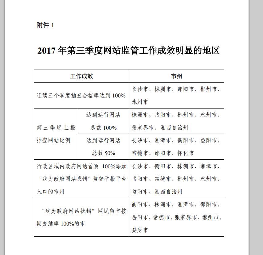 湖南省人民政府辦公廳關於2017年第三次全省政府網站抽查情況的通報
