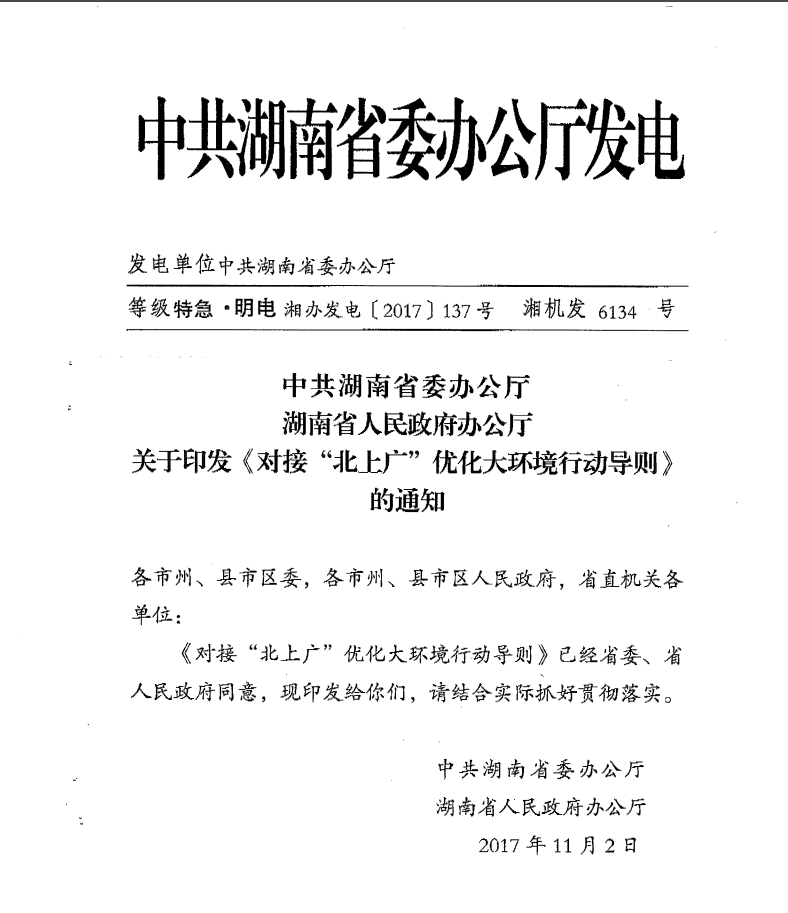 關於印發《對接“北上廣”優化大環境行動導則》的通知