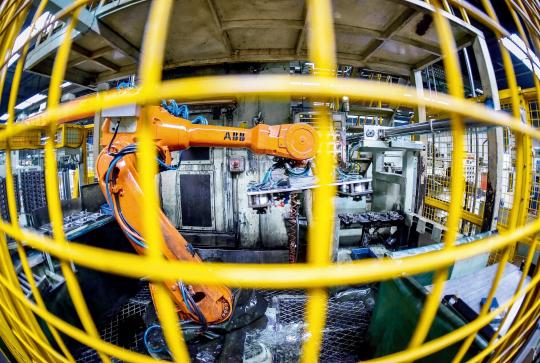 廣東佛山美的集團美芝壓縮機工廠的機械手在高效運轉