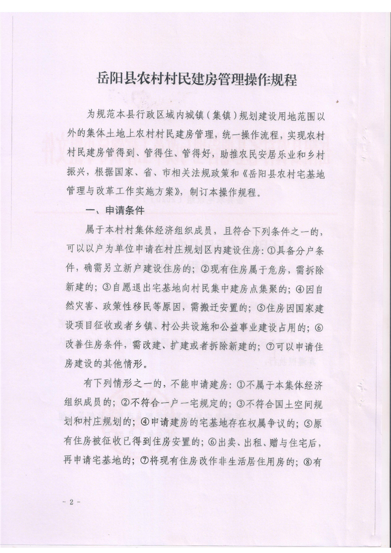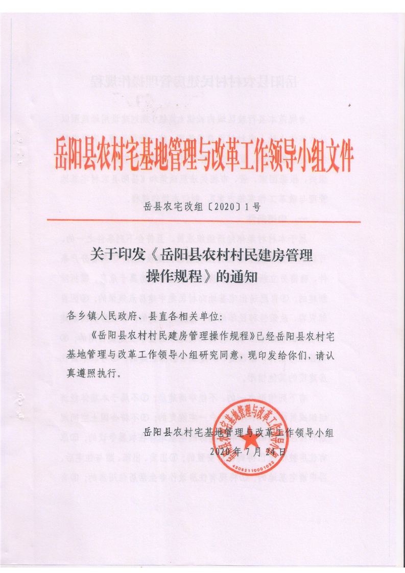 關於印發《嶽陽縣農村村民建房管理操作規程》的通知
