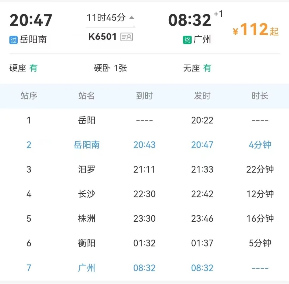 京廣鐵路嶽陽南站已於7月31日17時59分實現首趟客運列車正式停靠。目前,一期工程在開行K435(武昌—惠州)、K1160(廣州—煙台)列車基礎上,於8月1日同步增開暑期、春運及重要節假日的K6501(嶽陽—廣州)、K6502(廣州—嶽陽)1對臨時客運列車。
