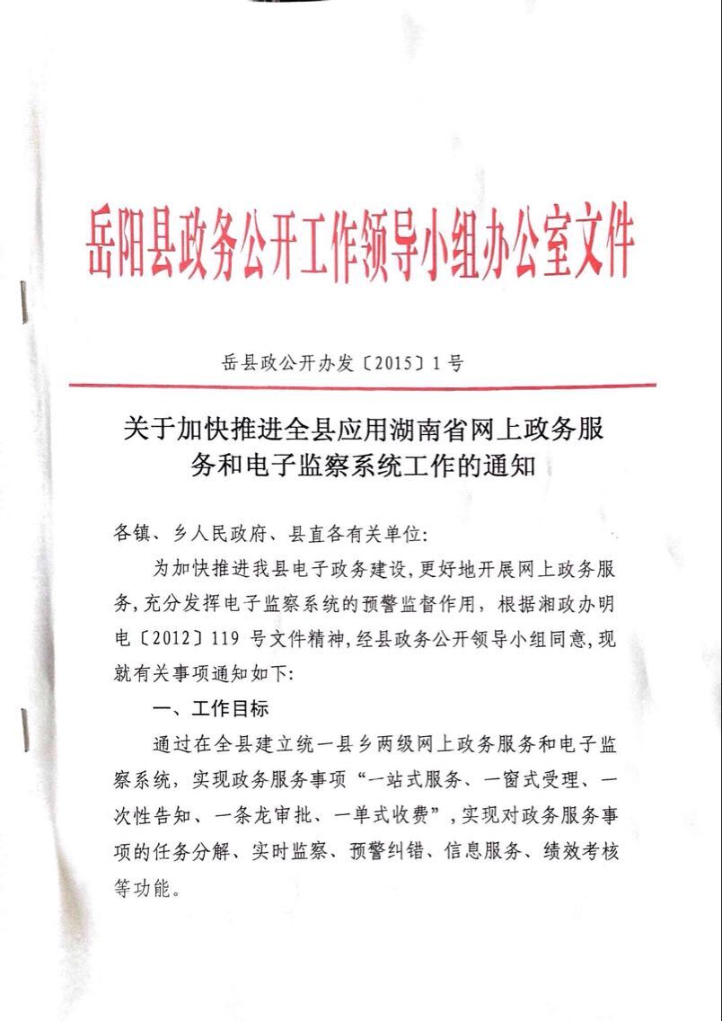 關於加快推進全縣應用湖南省網上政務服務和電子監察係統工作的通知