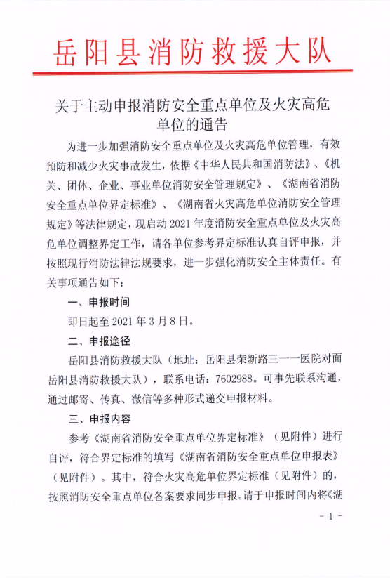 關於主動申報消防安全重點單位及火災高危單位的通告