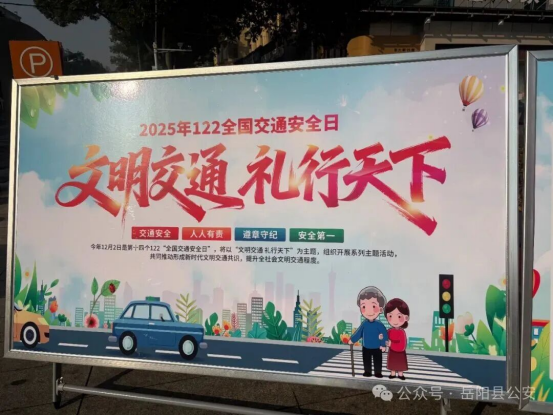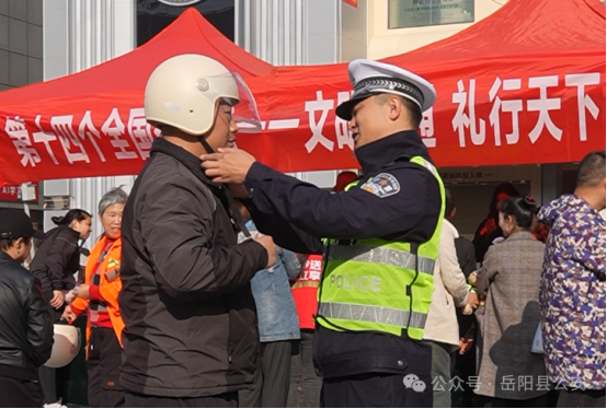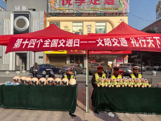 在第十四個“全國交通安全日”到來之際,嶽陽縣公安局交警大隊緊緊圍繞“文明交通 禮行天下”主題,精心組織開展一係列形式多樣、貼近群眾的交通安全宣傳活動,讓交通安全知識走進街頭巷尾、融入校園課堂,營造全社會共同關注交通安全的濃厚氛圍。