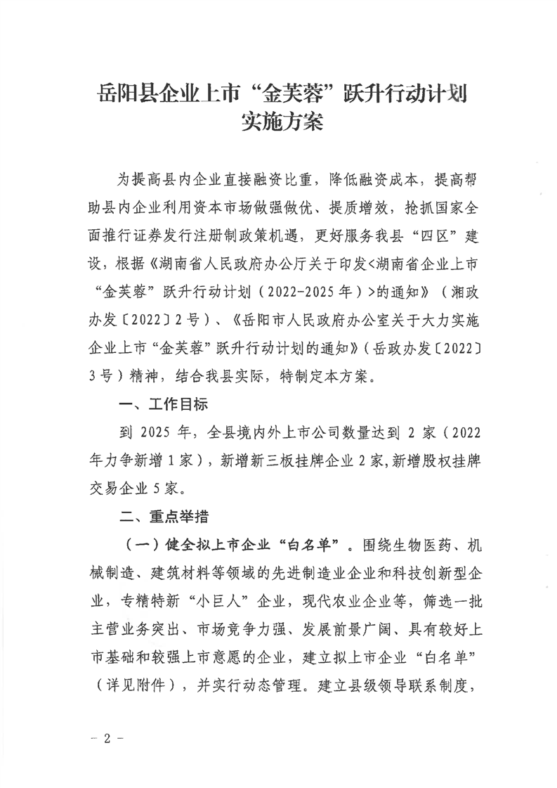嶽陽縣企業上市“金芙蓉”躍升行動計劃實施方案