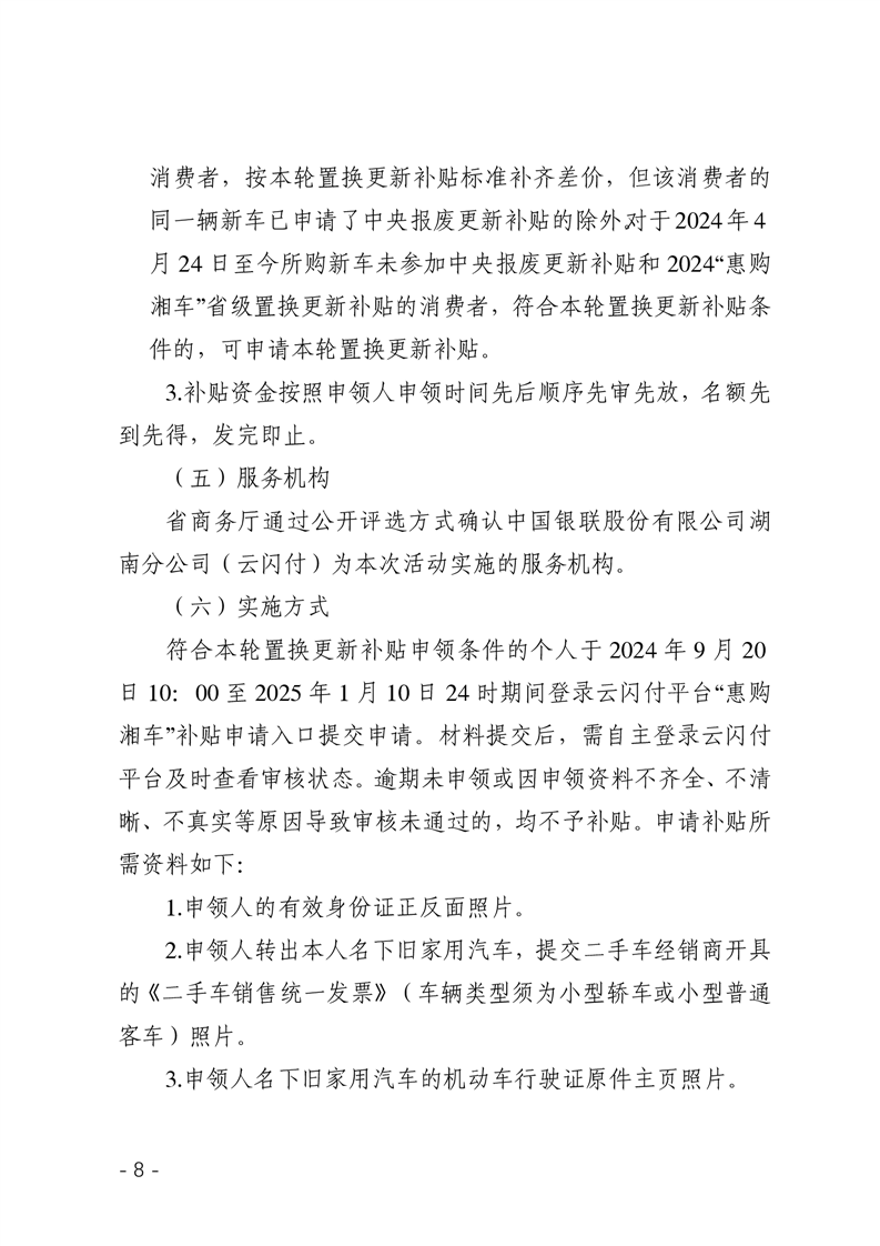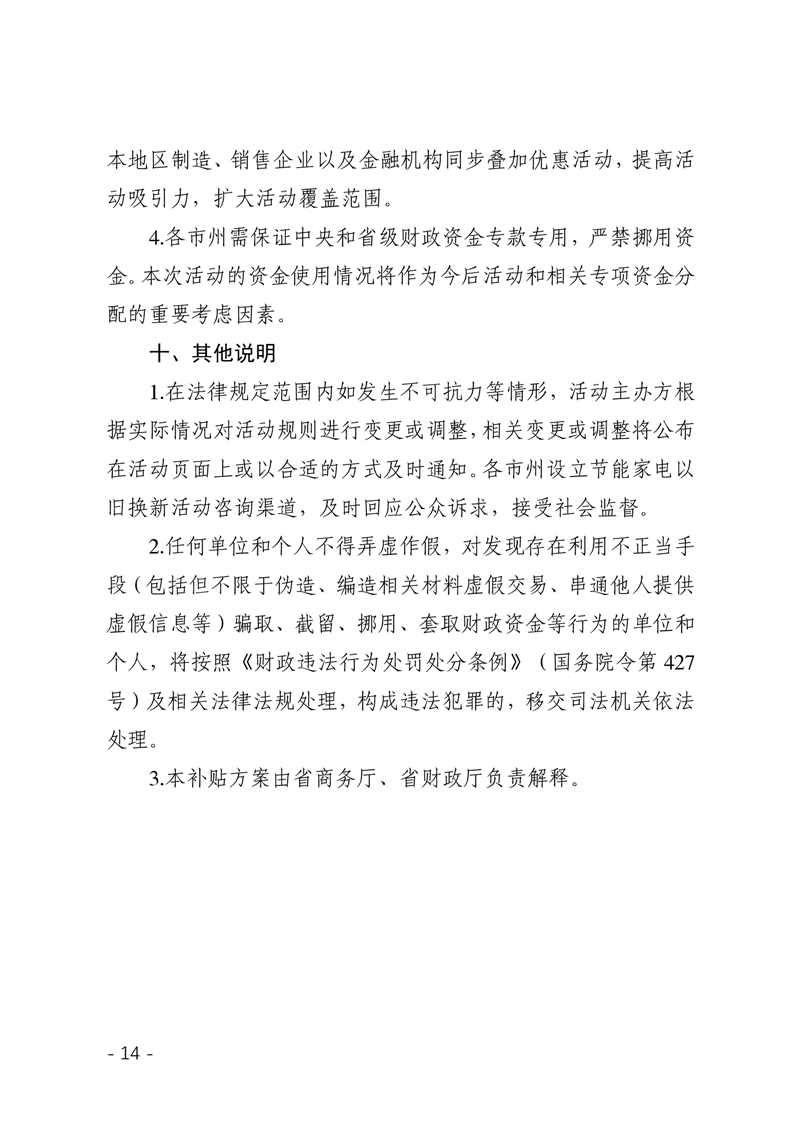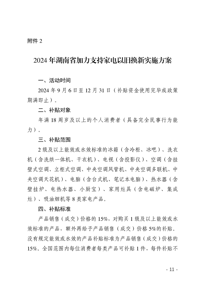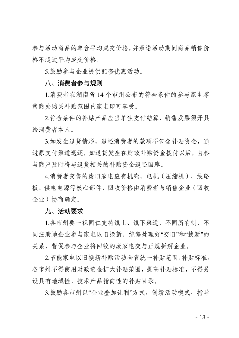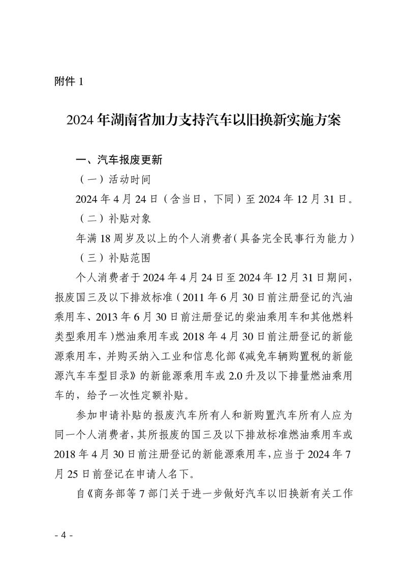 湖南省商務廳 湖南省財政廳關於 加力支持汽車、家電、電動自行車以舊換新 有關工作的通知