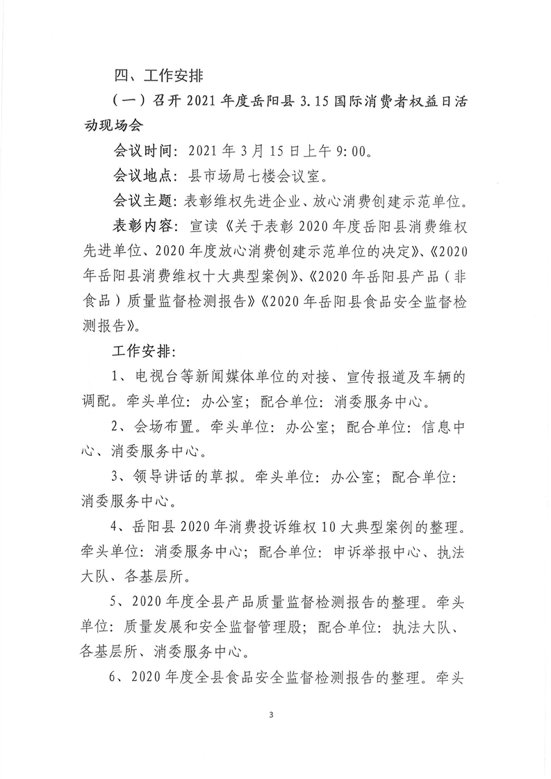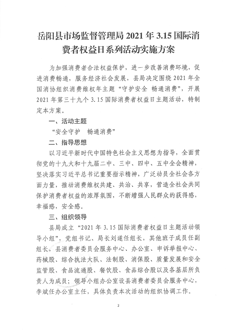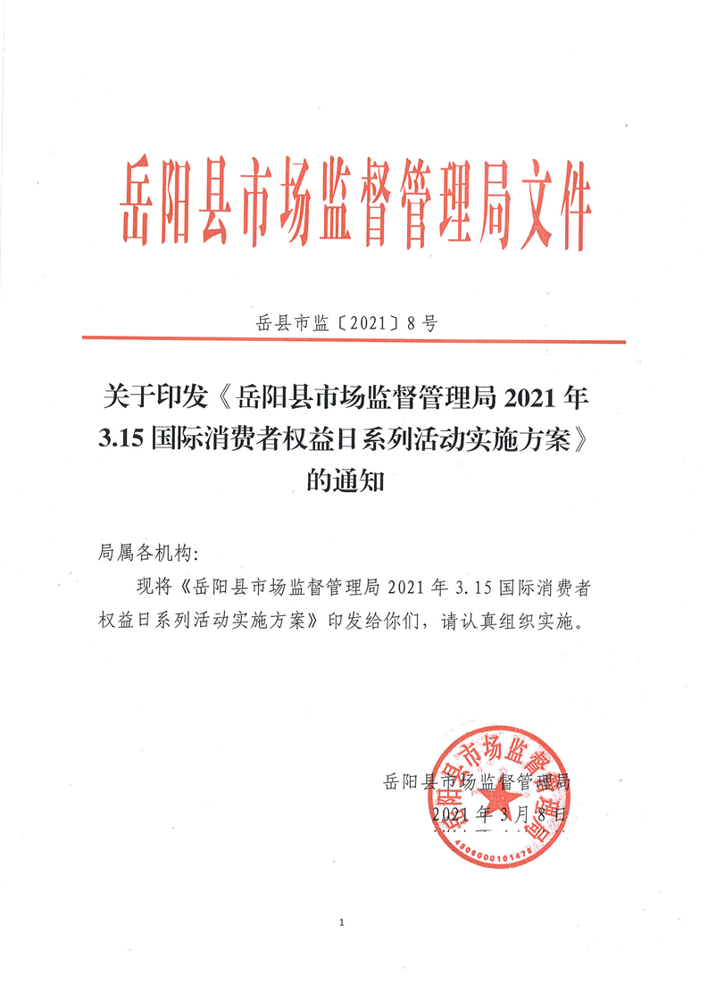 嶽陽縣市場監督管理局2021年3.15國際消費者權益日係列活動實施方案