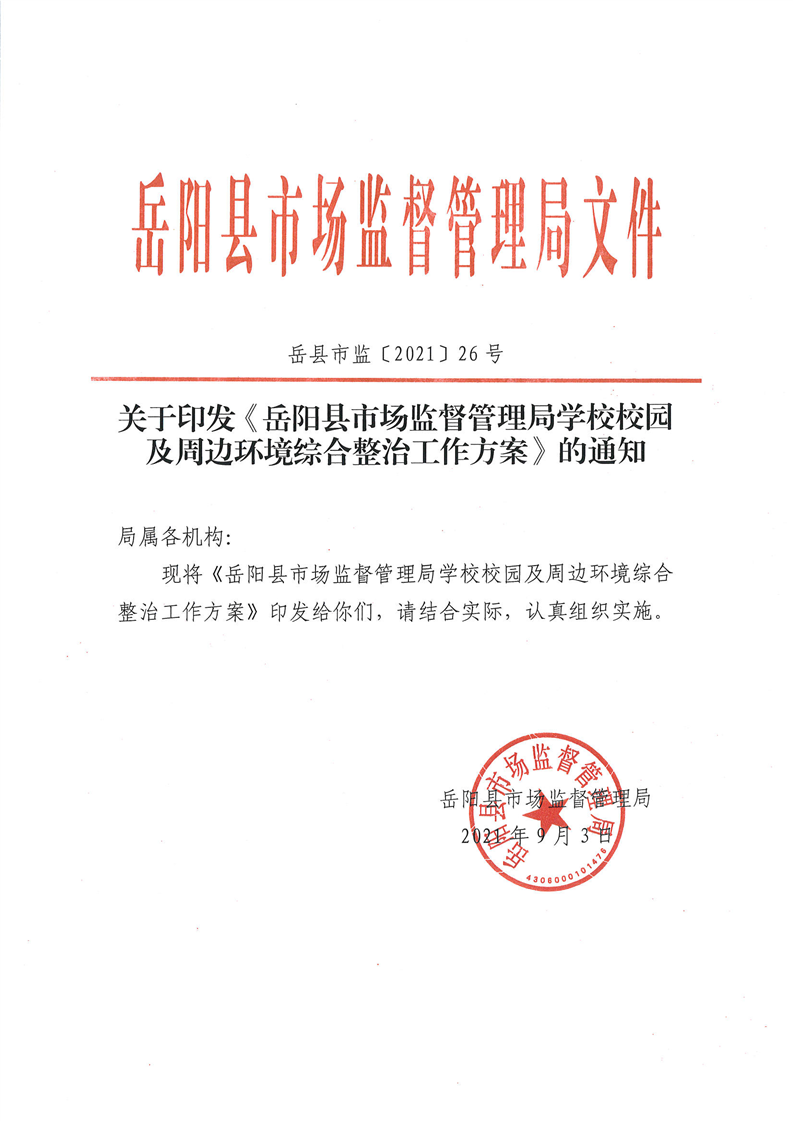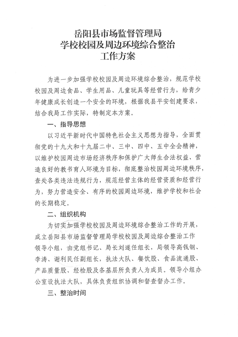 嶽陽縣市場局學校校園及周邊環境綜合整治工作方案