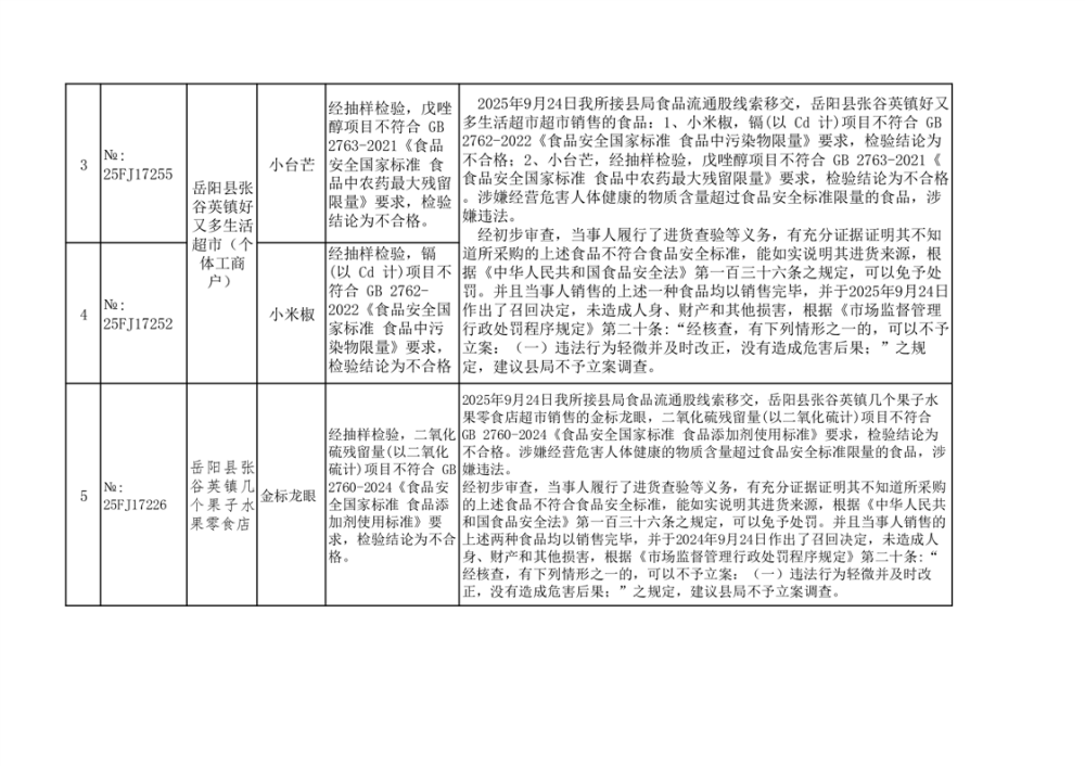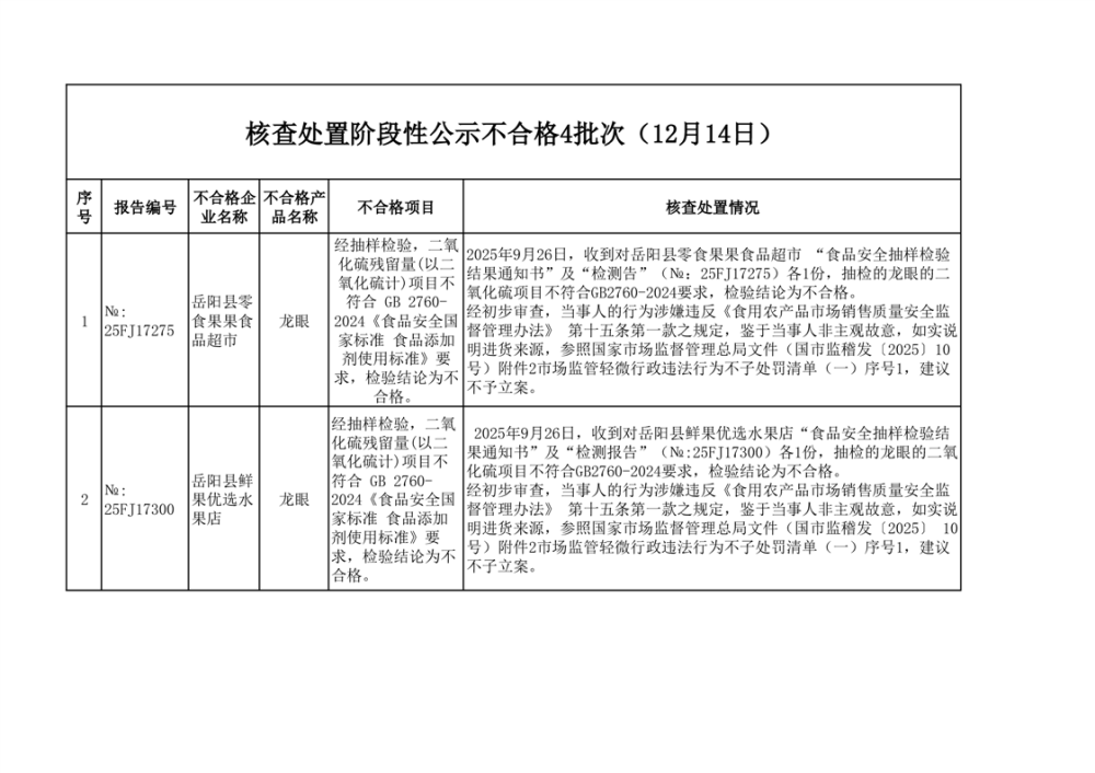 核查處置階段性公示不合格4批次(12月14日)