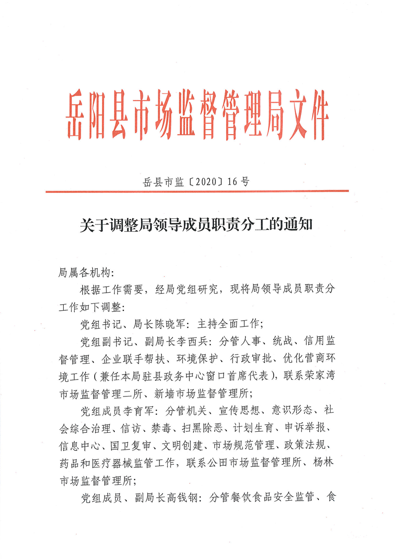 關於調整局領導成員職責分工的通知