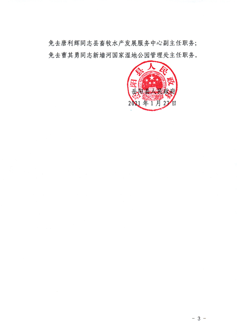 嶽陽縣人民政府關於馮高平等同誌職務任免的通知