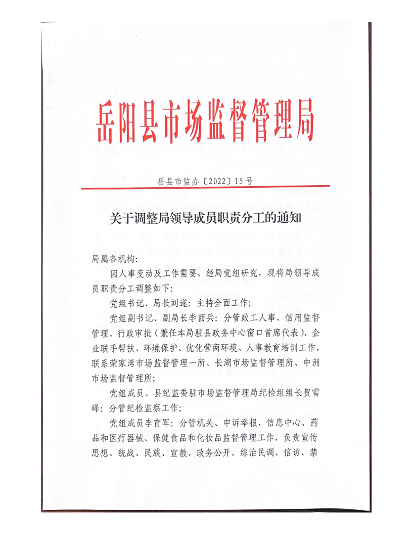 2022年縣市場局領導職責分工