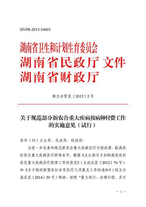 關於規範部門新農合重大疾病按病種付費工作的實施意見